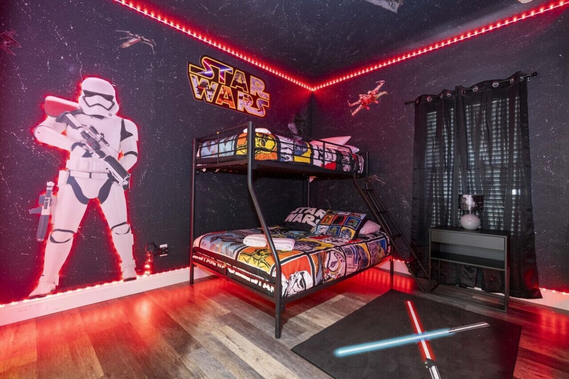 In its cozy and comfortable bedrooms, the house can accommodate up to 11 guests. The home has a fully equipped kitchen, a living room, a bathtub, laundry, and a BBQ. With its prime location near all the theme parks, you’ll have all the comforts of home and more. Also, on our property, you can enjoy your favorite channel or TV show. We have Netflix, Peacock, and Roku on all TVs. Everything you need for your entertainment and comfort is close to you.