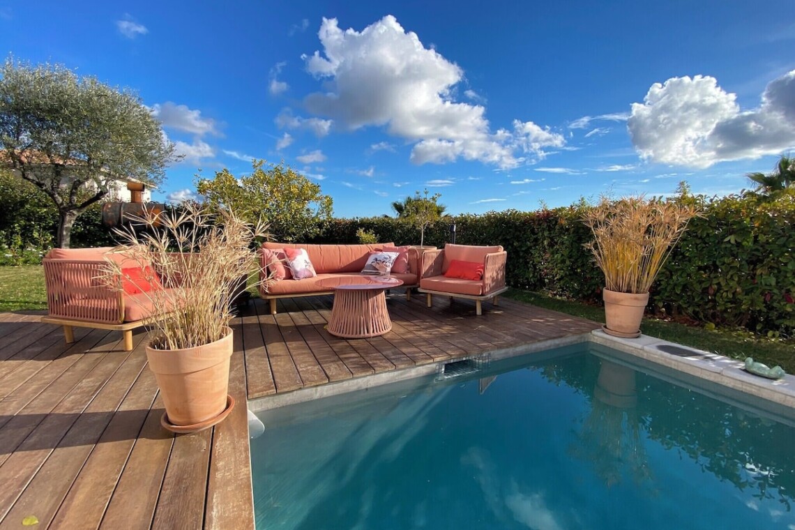 Private room with garden, pool and sea view